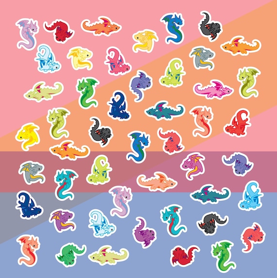 Colorful Dragon Stickers Set Of 45 Etsy Uk