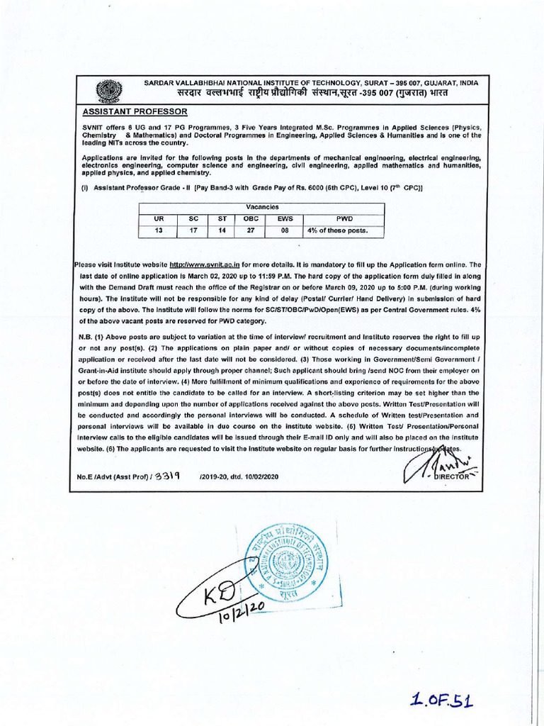 Advertisement For The Post Of Assistant Professor Pdf